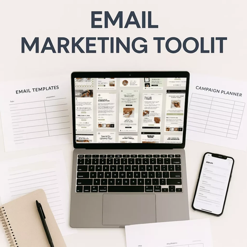 The Email Marketing Toolkit comes with 10 customizable templates, a subject line swipe file, and a planning sheet to organize your campaigns like a pro.