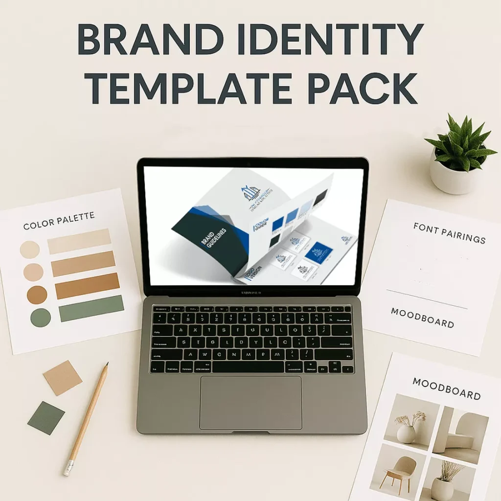 Our Brand Identity Template Pack gives you editable Canva logo templates, color palettes, font pairings, and a brand style sheet — everything you need to look professional from day one.